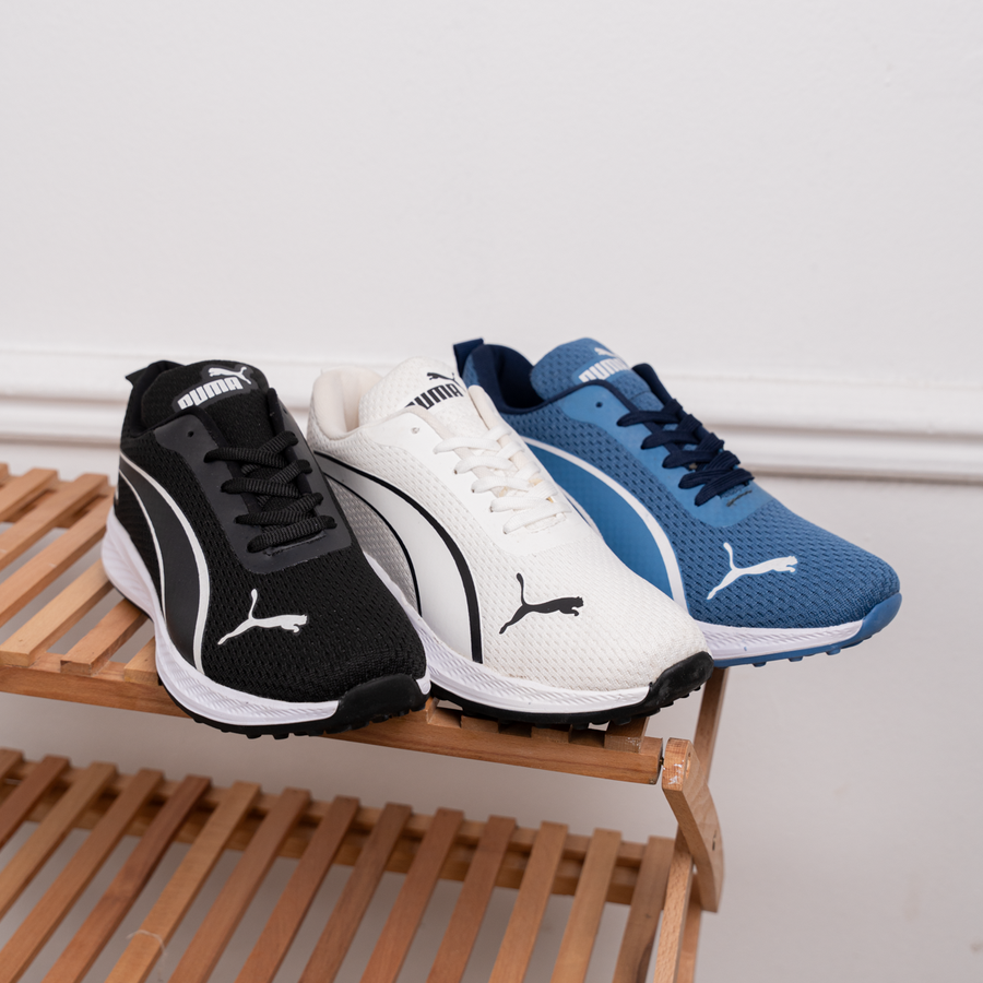 كوتشي PUMA مستورد بالكامل بنعل EVA طبي خفيف وطري، فرش ميموري فوم مريح، مبطن مايكرو فايبر، مقاسات 41–46، تلبيس مظبوط، معاينة قبل الاستلام واسترجاع 14 يوم.
