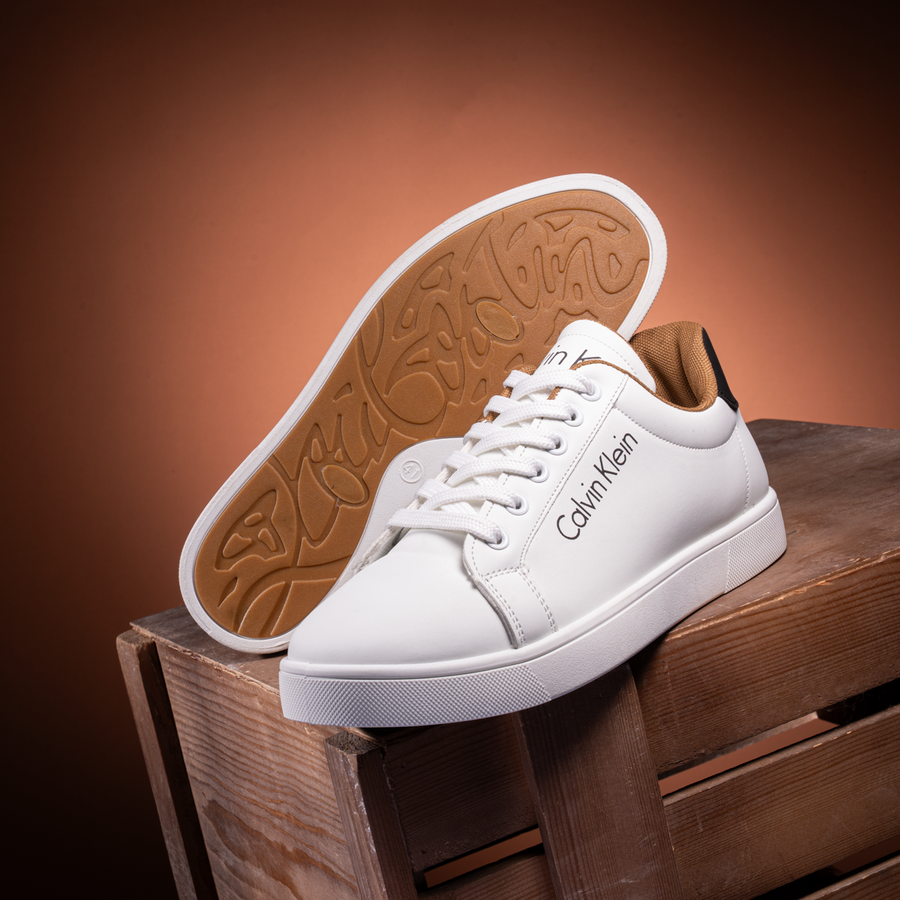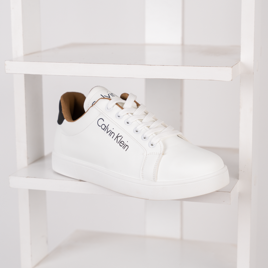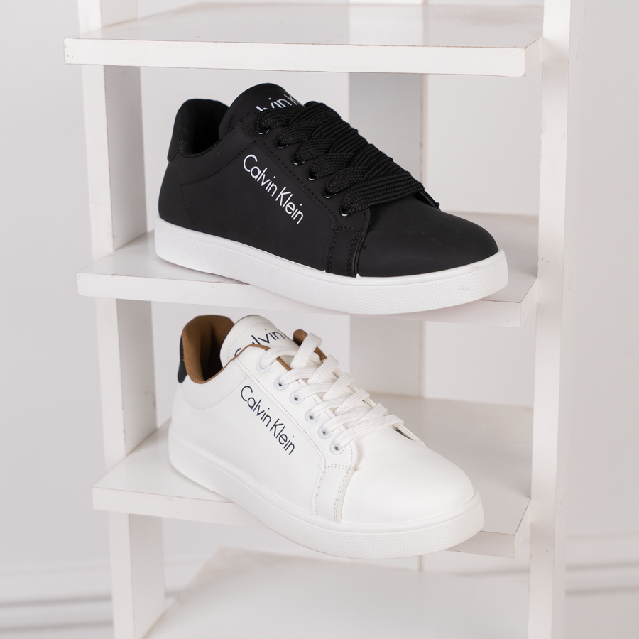 حذاء سنيكر CK مناسب للمهام اليومية والخروجات فوندي جلد مستورد نعل مطاطي مضاد للتزحلق الألوان : اسود - أبيض